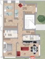 L´appartamento consta di 113 mq abitativi, oltre a giardino di 100 mq ad uso esclusivo, e si compone di zona giorno con cucina a vista, tre camere e due bagni. Sono da considerarsi di pertinenza dell´appartamento un posto auto riservato in parcheggio condominiale e, per gli amanti del verde, anche 200 mq di orto.