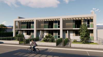 Grosseto via Serenissima zona Ospedale nella nuovissima lottizzazione residenziale denominata ´´Serenissima´´ a confine con la bella campagna circostante ed in prestigiosi costruendo fabbricati a schiera in classe energetica ´´A´´ vendesi rifinitissimo appartamento al piano terra di vani 4 mq.81 con ingresso indipendente dalla corte esclusiva di mq.40 e composto da soggiorno, cucina, disimpegno, due camere, bagno finestrato e due verande per tot. mq.24. Completa la proprietà un comodo garage di mq.18. Realizzato con struttura portante antisismica e murature con blocchi termici che ne garantiscono una elevata coibentazione termica ed isolamento acustico. L´eccellente capitolato delle opere, delle rifiniture e dei materiali impiegati prevede tra le tante cose l´utilizzo di pavimenti in parquet Rovere e/o in gres porcellanato smaltato delle migliori marche nazionali ed estere, infissi esterni n PVC con vetri camera con gas Argon, impianto di allarme volumetrico con centralina telefonica di chiamata, impianto di riscaldamento tipo indipendente a gas metano con caldaia a condensazione ed impianto radiante a pavimento; pannelli solari termici collegati al bollitore per la diffusione di acqua calda, impianto di condizionamento canalizzato ed impianto autoclave indipendente per ciascun appartamento. Bellissima occasione di acquistare un immobile indipendente che guarda al futuro! Classe Energetica: A3 - IPE: 0.00kWh/mq anno