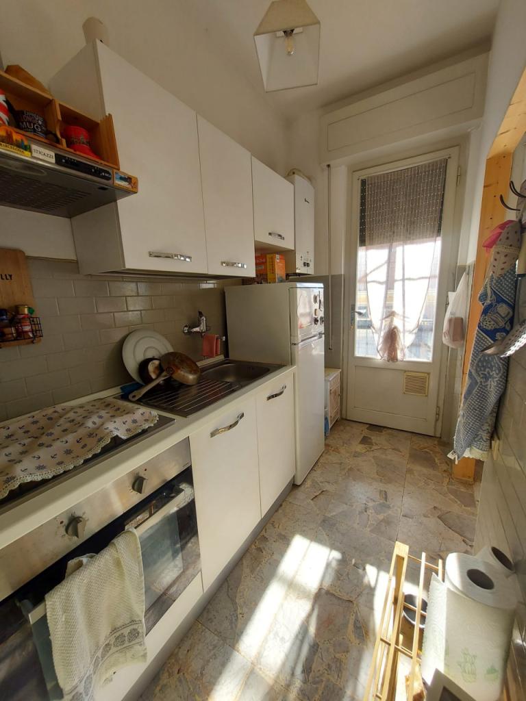 Sito al primo piano S\A di una piccola palazzina, l´appartamento è composto da soggiorno con divano letto, cucinotto con accesso al terrazzo abitabile da cui si vede il mare, camera matrimoniale e bagno con box doccia. Posto auto assegnato.