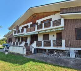 Porzione di villa bifamiliare su quattro livelli collegati da scala interna e composta da un appartamento, un’autorimessa e giardino comune. Appartamento composto da: al piano terreno ingresso comune, soggiorno, cucina, sala e bagno, oltre a tre terrazzi; al piano primo tre camere da letto, due studi e due bagni, tre terrazzi; al piano sottotetto, un locale ad uso sottotetto e due intercapedini; al piano seminterrato, centrale termica, disimpegno, w.c., due lavanderie, tavernetta e cantina. Autorimessa.