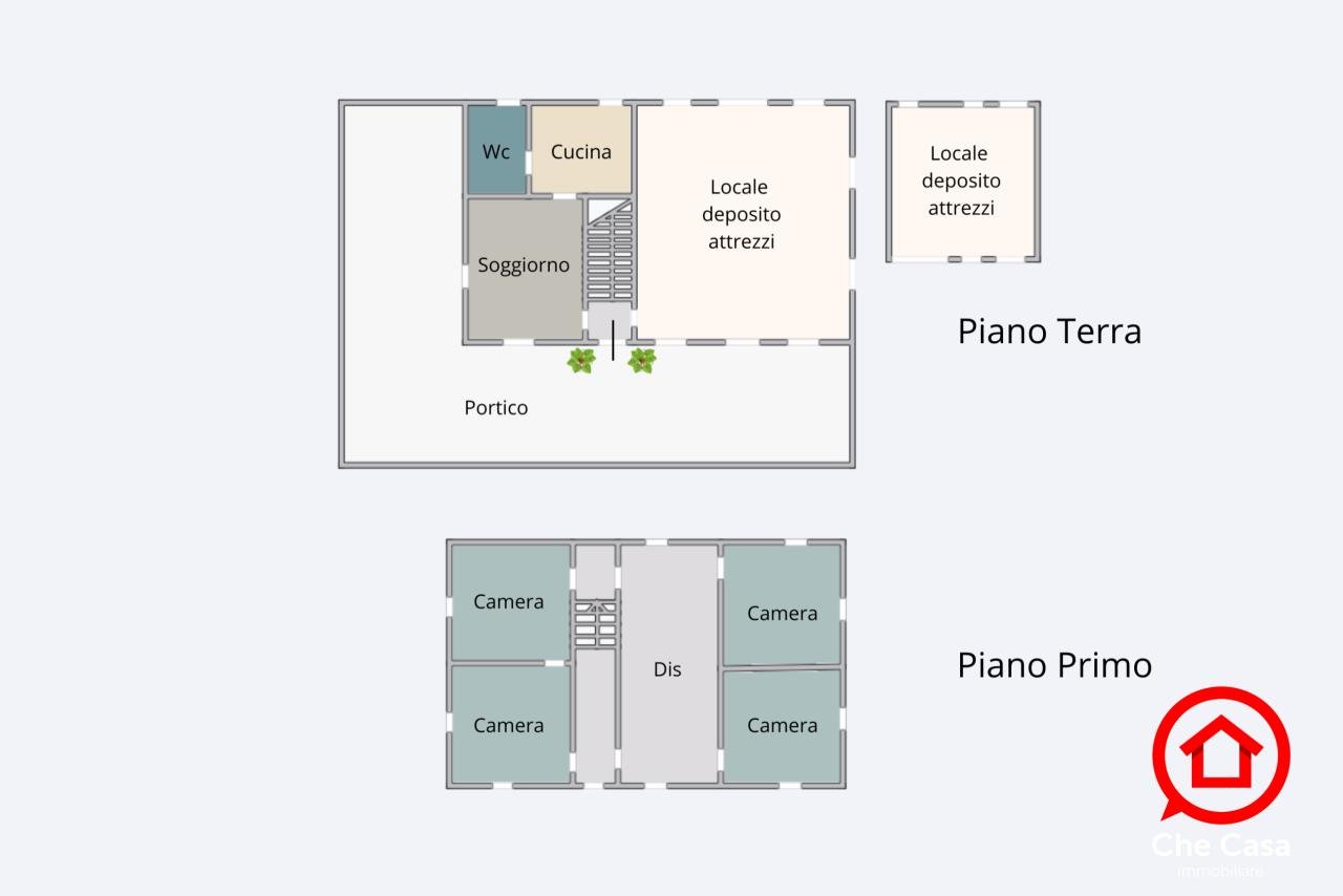 L’immobile si sviluppa su due livelli: al piano terra: circa 120 mq con soggiorno, cucina, bagno e una ex stalla, oltre a un porticato su due lati di circa 120 mq, perfetto per momenti all’aperto o come spazio di deposito. Al primo piano ulteriori 120 mq con quattro camere da letto e un ampio disimpegno.