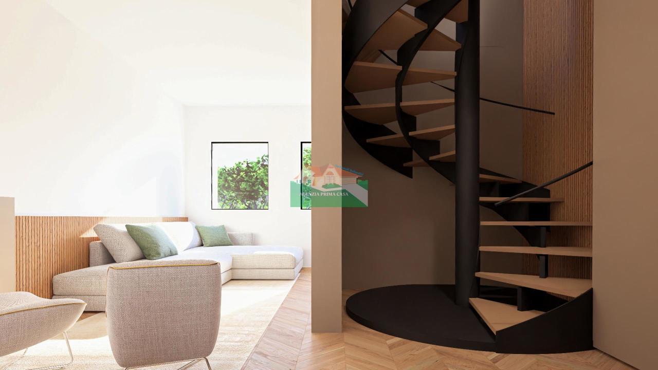 All´interno si compone da al primo piano luminoso soggiorno e bagno finestrato; al secondo piano cucina, due bagni, ripostiglio, due camere da letto (matrimoniale con cabina armadio e singola).