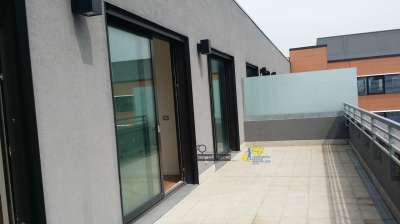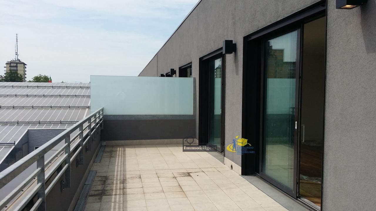 ATTICO NUOVO adiacenze stazione, mq 95 commerciali con soggiorno - angolo cottura, due camere, servizio e due terrazzi di 30 mq e cantina. Disponibili garage e posti auto. Vista panoramica. Classe B Euro: 249.000 + garage/posto auto. Tel. 335-371219 Immobilgest