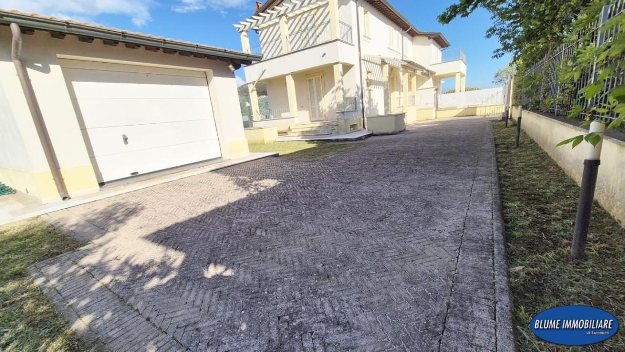 Rif.Ag. 3818CP - Comune di Camaiore, nella tranquilla località di Capezzano Pianore, in zona campagna a dieci minuti dal mare, immersa nel verde, vendesi villa in bifamiliare di recente costruzione. Questa elegante proprietà si sviluppa due livelli, piano terra rialzato e piano primo, oltre ad un piano seminterrato con finestre, è inoltre corredata di un garage di circa mq. 25, che può servire anche come studio, ampia zona a parcheggio con accesso pedonale e a mezzo di cancello carraio elettrico. E´ inoltre corredata di un grande giardino di mq. 1.500 con splendida vista sulla campagna e le colline, oltre a terrazze e porticati. E´ possibile realizzare una piscina. Perfetta per una famiglia in cerca di tranquillità, ma con tutti i servizi vicini. Le rifiniture sono di particolare pregio: marmi, parquet, infissi doppio vetro in legno, persiane, aria condizionata, riscaldamento a pavimento, portoncino blindato, travi a vista al piano primo, impianto di allarme. Si compone al piano rialzato di ingresso, sala con accesso a terrazza, cucina abitabile con accesso ad altra terrazza, bagno con doccia e finestra, scala di accesso al piano primo che si compone di due camere matrimoniali, ognuna con il suo bagno privato con finestra e di una bella terrazza. Al piano seminterrato, ma con finestre a parete, troviamo una taverna e altri due vani uso ripostiglio, al momento utilizzati come camera e bagno/doccia. Unità ´´A´´ Anche l´altra unità bifamiliare è in vendita, nel caso due famiglie desiderassero abitare vicine. La richiesta è di euro 580.000 trattabili. Classe energetica E Prot. 3818CP Per motivi di privacy, l´indirizzo è solo indicativo della zona in cui si trova l´immobile. Agenzia Blume Immobiliare di Iacometti Antonella tel. - SC