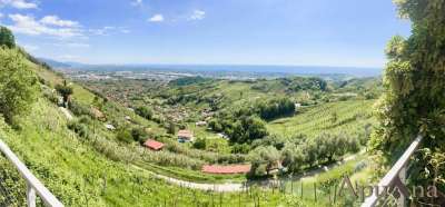 Rif.Ag. MLS-466 - MASSA - Situata sulle dolci colline del Candia perdendosi tra i vigneti e i bellissimi panorami verso il mare, dove nelle belle giornate la vista può spaziare da Livorno a Monte Marcello e sulle isole dellarcipelago toscano, proponiamo unincantevole proprietà, originariamente un rustico, di circa 200 mq con terreno circostante piantumato di circa mq 5000. Laccesso alla proprietà avviene dopo aver percorso qualche chilometro dalluscita autostradale di Massa in direzione colline del Candia; si continua poi in una strada in salita, con un ultimo breve tratto sterrato ma ben praticabile, e si giunge a un ampio parcheggio privato. Il casale, oggetto di totale ristrutturazione nel 2007 e pertanto in ottime condizioni di manutenzione, si sviluppa su due livelli oltre al piano seminterrato ed è caratterizzato da ambienti confortevoli e luminosi. Lingresso principale si trova al piano terreno, tramite una profonda balconata fronte mare che accede alla zona giorno costituita da una grande cucina moderna con zona pranzo, un ampio ripostiglio, un soggiorno con camino e un bagno ospiti. Tutto il piano è collegato tramite porte finestre alla parte esterna , ossia al patio con pergolato sul lato cucina, alla balconata fronte mare sul lato soggiorno e alla zona piscina sul lato laterale del soggiorno. La zona notte, climatizzata come tutti gli atri ambienti, è collocata tramite comoda scala al piano superiore dove ci accolgono due camere da letto matrimoniali di cui una con ampia terrazza e due cabine armadio e tre bagni. Al piano seminterrato, sempre collegato da scala e con intercapedine dal terreno, trovano collocazione altri due locali, eventualmente terza e quarta camera da letto, un bagno, tutti finestrati oltre ad un locale tecnico (purificazione acqua, pompa piscina ecc.) e un locale di cisterne per la raccolta dacqua. La pavimentazione in resina al piano terreno e parquet sbiancato al primo piano conferiscono a questa dimora un sapore attuale e sofisticato. Le finiture sono di pregio (tutti i bagni con rivestimento in resina alle pareti, infissi, vetri, persiane in ferro antiintrusione, impianto antifurto). Una gradevole piscina con idromassaggio, attrezzata con sdraio e ombrellone per una piacevole vita allaperto, è il fiore allocchiello della proprietà. La parte esterna, molto curata, è costituita da pergolato con zona pranzo e giardino terrazzato e piantumato con fiori e piante tipici della macchia mediterranea. Investimento perfetto per coloro che desiderano una dimora vicina al mar, ma immersa nel verde, con vista panoramica e massima privacy, molto apprezzata da chi non ama la confusione del turismo estivo. - SC