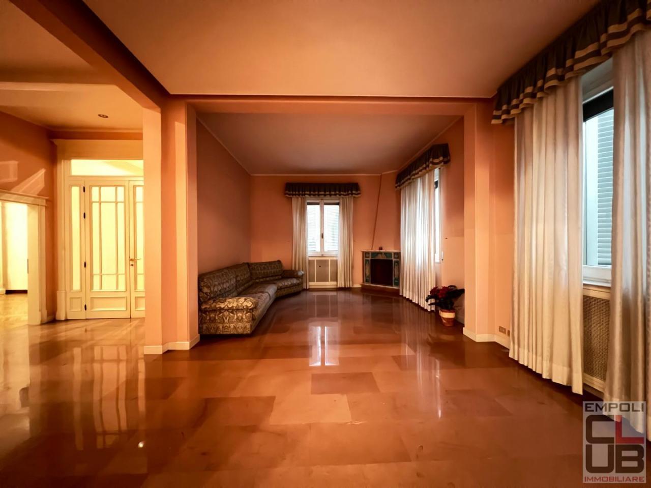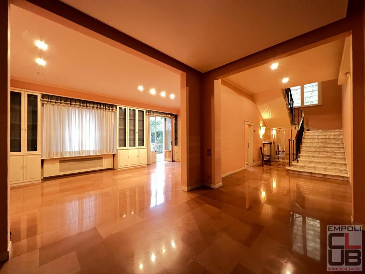 Rif.Ag. F/0535 - CAPOLUOGO - Empoli - RIF. F/0535 - PRESSI VIA XX SETTEMBRE. UN IMMOBILE CENTRALE COMPLETAMENTE INDIPENDENTE CON UN PREZIOSO E ALQUANTO UNICO GIARDINO. ESCLUSIVO VILLINO DEI PRIMI ANNI ´900 DI TOTALI MQ 450 FRA ABITAZIONE E LOCALI TAVERNA, DISPOSTO SU 2 LIVELLI ABITATIVI (PIANO TERRA E PIANO PRIMO) ED UNO ACCESSORIO (PIANO INTERRATO). IL VILLINO RISULTA LIBERO SU QUATTRO LATI, E´ ´´ARRICCHITO´´ DA UNA FANTASTICA TERRAZZA VIVIBILE ACCESSIBILE ALLA ZONA GIORNO E MQ 400 DI GIARDINO VIVIBILE ALL´INTERNO DEL QUALE, IN CORPO STACCATO E DEFILATO E´ PRESENTE UN DOPPIO GARAGE (CIRCA MQ 50); QUEST´ULTIMO COMODAMENTE FRUIBILE DAL CANCELLO CARRABILE ATTESTANTE SULLA VIA PUBBLICA. il suntuoso ingresso invita al piano rialzato, e da questo, attraverso una vetrata liberty, si giunge all´immenso triplo soggiorno, attigua la sala da pranzo, la zona dedicata alla cucina abitabile, il vano studio ed un bagno; il vano cucina ed il soggiorno-pranzo accedono ad una terrazza abitabile rialzata e riservata dalla quale a sua volta si giunge (tramite scala esterna) all´ampio e vivibile giardino posteriore. Al piano primo (raggiungibile attraverso una suntuosa scala in Marmo di Carrara con parapetto tipico) sono presenti 5 camere matrimoniali e due servizi igienici. Al piano interrato locali accessori per mq 150 costituiti da taverna dal sapore tipico con caminetto, bagno loggiato ampio e nuovo accesso diretto all´esterno. A completare la zona interrata un doppio vano pluriuso dedicato in questo momento a sala biliardi e bar. Immobile con particolari di pregio da salvaguardare. Pavimenti in marmo classico nella zona giorno e parquet montato a spiga a richiamare l´autentico liberty nella zona notte. Ultimato nella metà degli anni ´90 con materiali eleganti che arricchiscono una struttura intonsa importante nella sostanza e nell´estetica. L´immobile assume una particolare appetibilità per la sua pressochè totale indipendenza come nessun´altro in questa zona. DA VEDERE. Classe energetica: G, Ipe 200,00 - SC8643920
