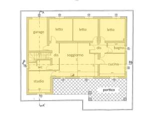 La soluzione caratterizzata da comode superfici è composta da un piano terra ad uso abitativo con un grande porticato che identifica la zona di ingresso dell´abitazione e si caratterizza come soggiorno estivo in quanto in affaccio sulla antistante piscina; internamente troviamo un soggiorno, una cucina abitabile, lo studio, tre camere da letto, i doppi servizi e una lavanderia.