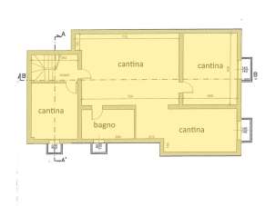 Un piano interrato di servizio raggiungibile con scala interna con diversi vani ad uso taverna con camino, cucina di servizio, cantina, lavanderia e il terzo bagno.