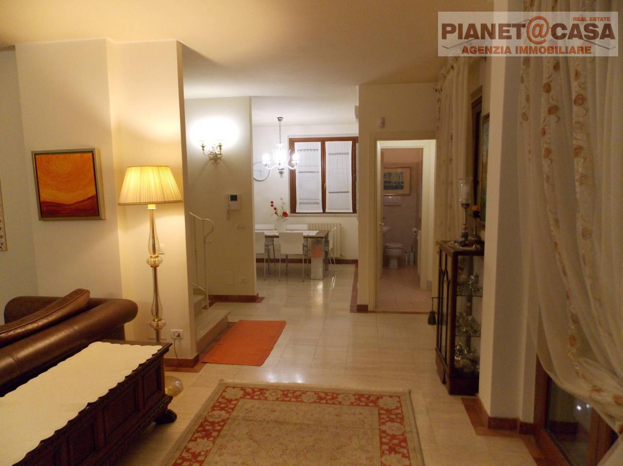Splendida Villa a Schiera di testa di circa 250 mq in vendita nelle Marche, in provincia di Ascoli Piceno, nel comune di Spinetoli e precisamente in Zona Madonnina a Pagliare del Tronto, sita in zona residenziale a poche centinaia di metri dal Centro e vicino a tutti i principali servizi. L´ immobile si sviluppa su tre livelli ed composto da: - Piano S1 adibito a locale RUSTICO con ingresso su ampio soggiorno con camino ed angolo cottura, un locale lavanderia, un bagno oltre ad un annesso laboratorio/studio. - Piano Terra con ingresso su soggiorno, cucina abitabile ed un bagno con antibagno. - Piano Primo composto da tre camere da letto, disimpegno, due bagni di cui uno in camera e due balconi a livello. Concludono la propriet una soffitta ed un ampio giardino su tre lati dell´ immobile. La Villetta si presenta in Ottimo stato di manutenzione PARI AL NUOVO, realizzata con materiali di prima scelta, come parquet, travertino resinato, bagni rifiniti con maioliche in ceramica, infissi in legno con doppi vetri, persiane in legno, portoncino blindato, impianto di allarme, oltre a predisposizione di impianto di aspirazione centralizzata ed aria condizionata, pannelli fotovoltaici ed impianto di irrigazione, etc. IMMOBILE DI PREGIO !!! IMMOBILE PARI AL NUOVO PRONTO PER ESSERE ABITATO !!! Per maggiori informazioni e per visionare l´ immobile contattare L´agenzia Immobiliare Pianeta Casa - 053 - SC
