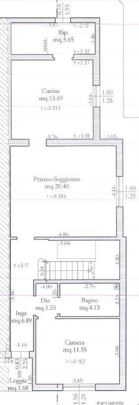 • Piano primo: camera matrimoniale, camera doppia, bagno, loggia