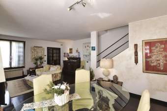 Taverna al piano interrato collegata direttamente al box doppio in larghezza. Tutti i locali affacciano sul giardino di pertinenza che circonda l´appartamento su tre lati. Infissi in legno con doppio vetro, pavimenti in parquet sia nella zona notte che nel sottotetto. Riscaldamento autonomo. Spese condominiali annue di euro 800,00. C.E. F - IPE 156,42 kWh/m2a.